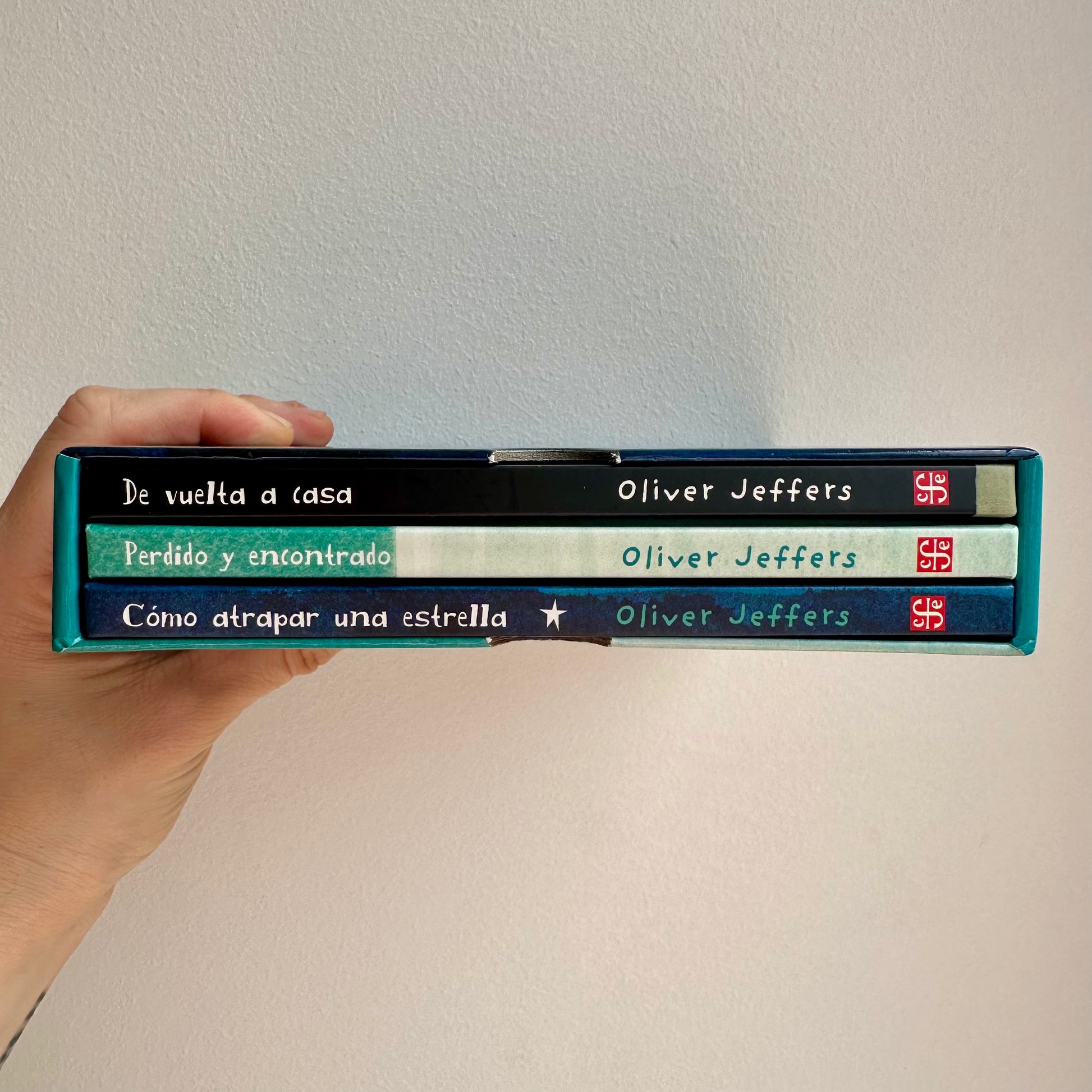 Tres de las más queridas historias de Oliver Jeffers se reúnen en esta pequeña caja: Perdido y encontrado, Cómo atrapar una estrella y De vuelta a casa. Cada una de ellas es un paseo de la imaginación hacia la amistad y el descubrimiento, hacia los sueños y los encuentros inesperados que nos deparan siempre descubrimientos sorprendentes. ¡Tres libros, tres aventuras.