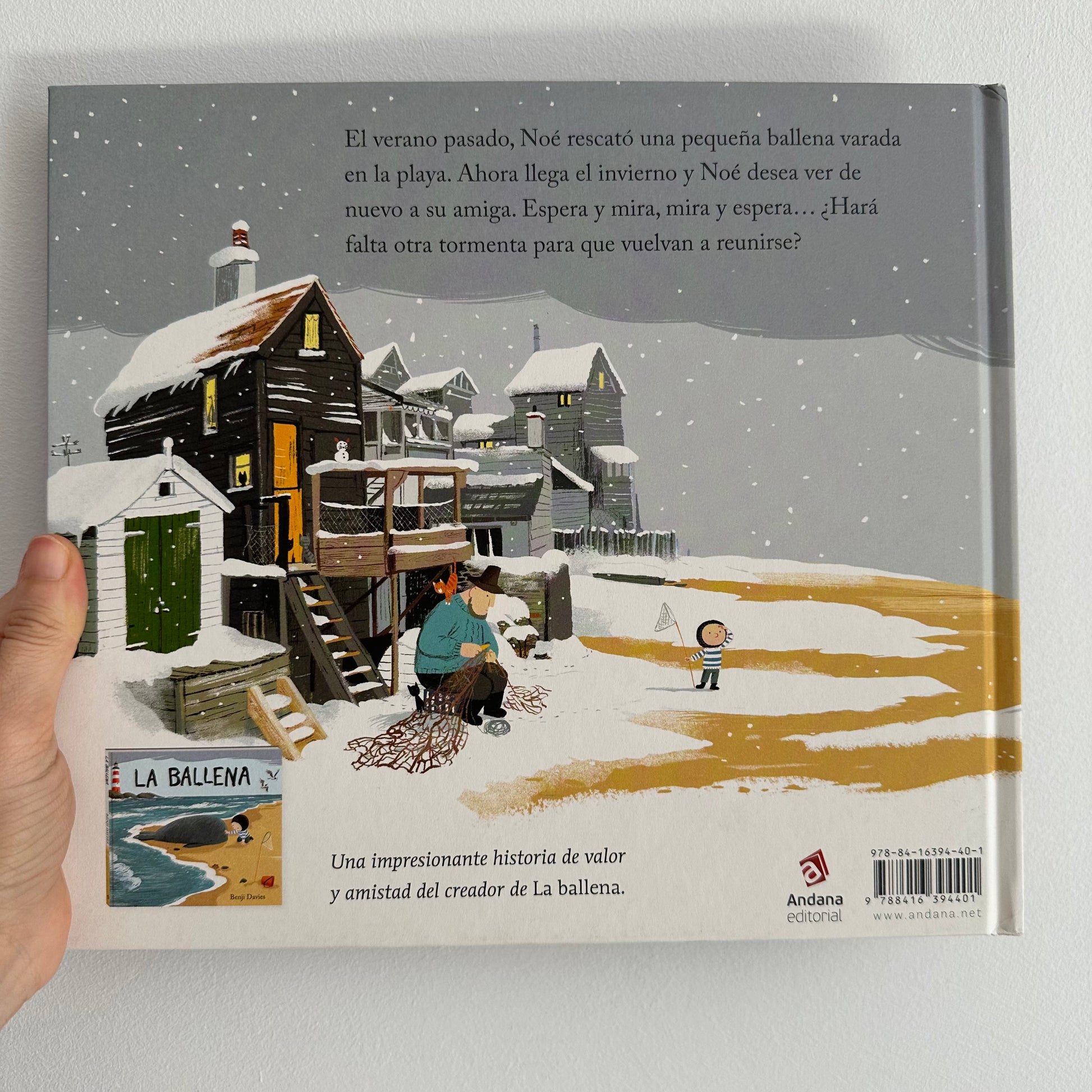 Una nueva aventura de Noé y la ballena. Una impresionante historia de valor y amistad del creador Benji Davies.. Mientras el padre de Noé emprende su última salida de pesca antes del invierno, él le espera en casa con sus gatos. De pronto una gran tormenta se desata, entonces Noé decide salir en su busca. Pero la tormenta es muy peligrosa, y queda atrapado en medio de un mar helado. Cuando parece que toda esperanza está perdida, una amiga muy especial viene a rescatar a Noé. Este libro es la segunda parte del gran éxito, La ballena: finalista del Premio de los libreros de Madrid