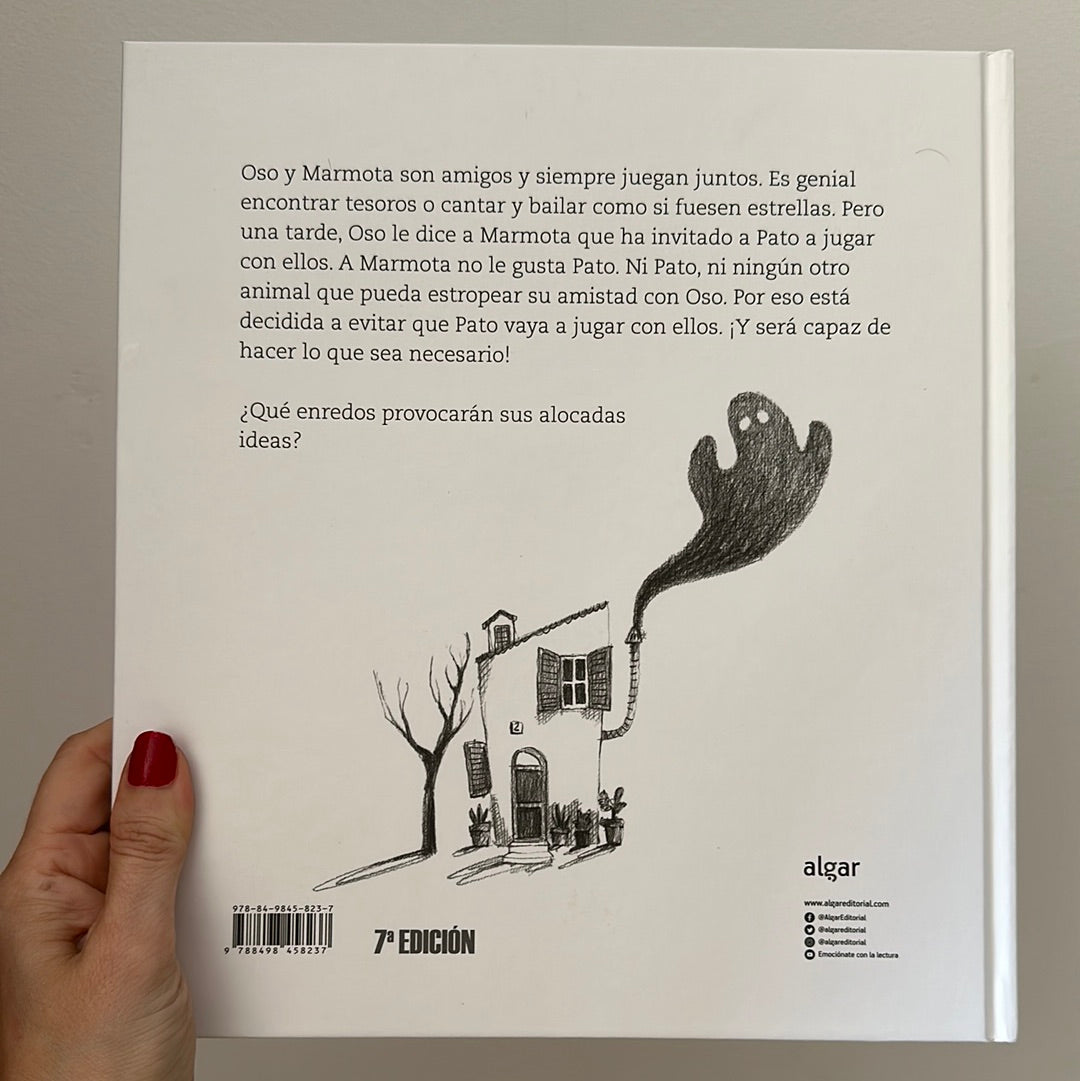 Oso y Marmota son amigos y siempre juegan juntos. Es genial encontrar tesoros o cantar y bailar como si fuesen estrellas. Pero una tarde, Oso le dice a Marmota que ha invitado a Pato a jugar con ellos. A Marmota no le gusta Pato. Ni Pato, ni ningún otro animal que pueda estropear su amistad con Oso. Por eso está decidida a evitar que Pato vaya a jugar con ellos. ¡Y será capaz de hacer lo que sea necesario!