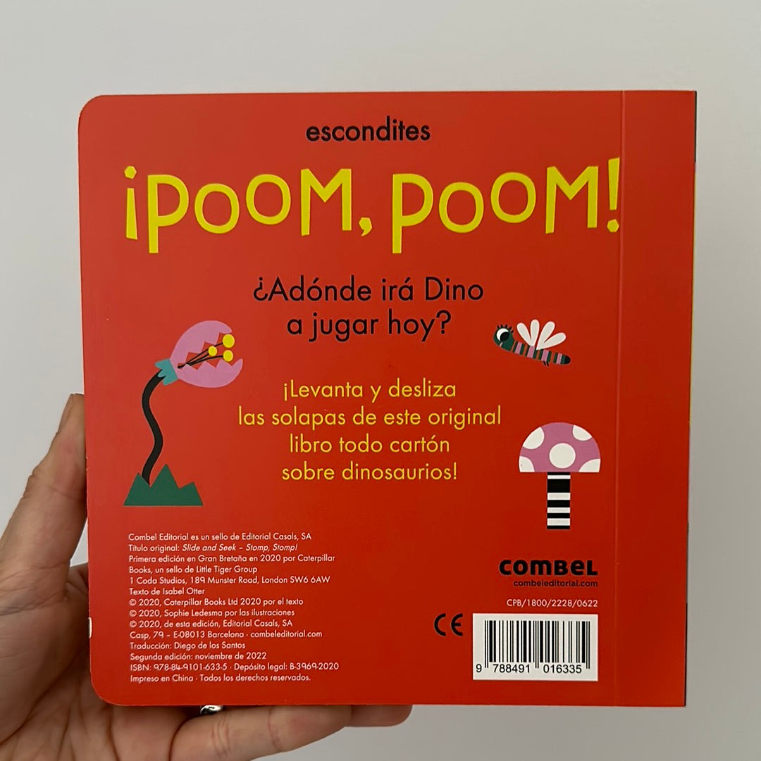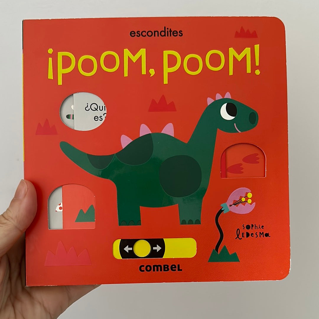 ¡Poom, poom!, ¿quién hay? ¿Con quién quiere jugar Dino? Un libro con solapas y mecanismos móviles sobre los dinosaurios.