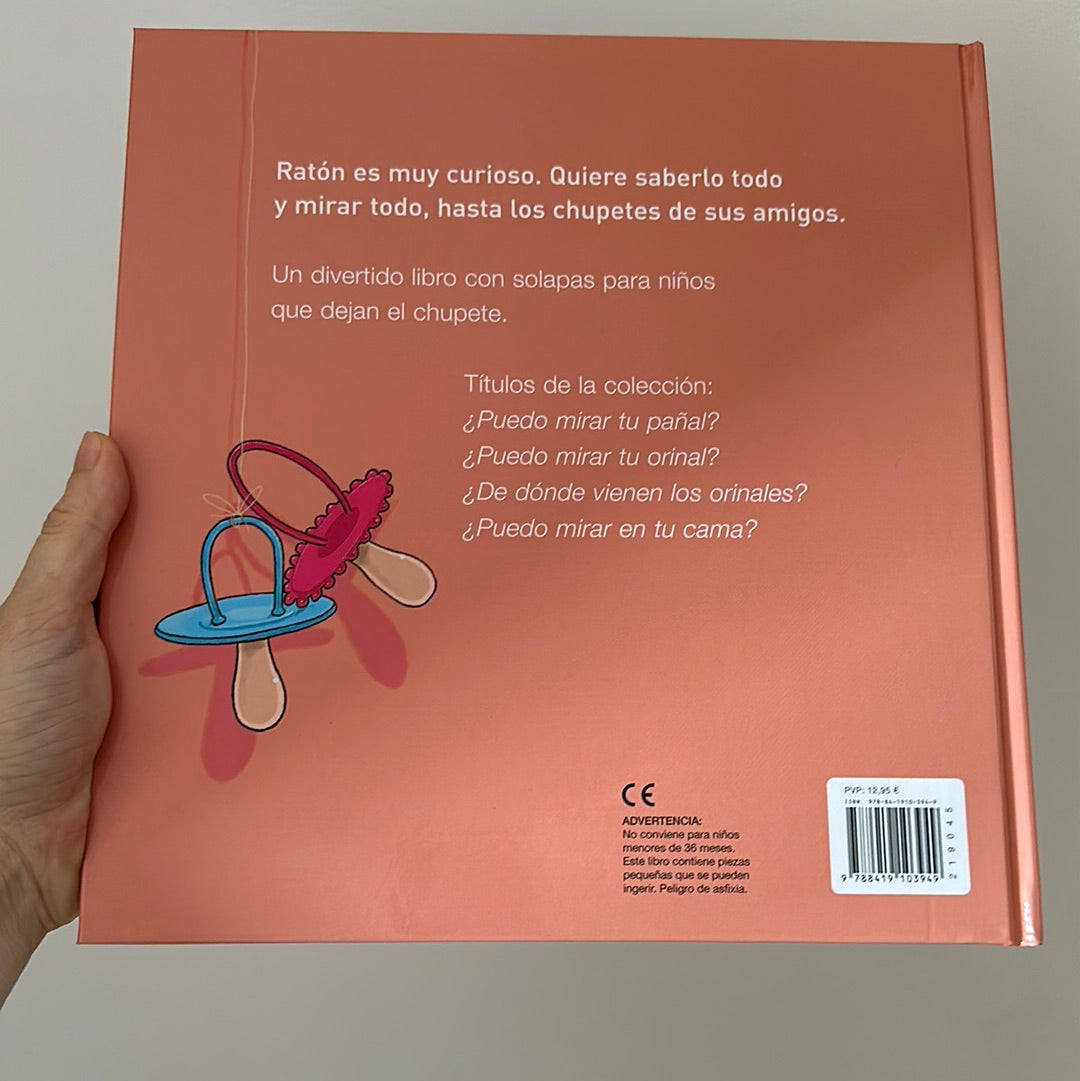 Ratón es muy curioso. Quiere saberlo todo y mirar todo, hasta los chupetes de sus amigos. Un divertido libro con solapas para niños que dejan el chupete.