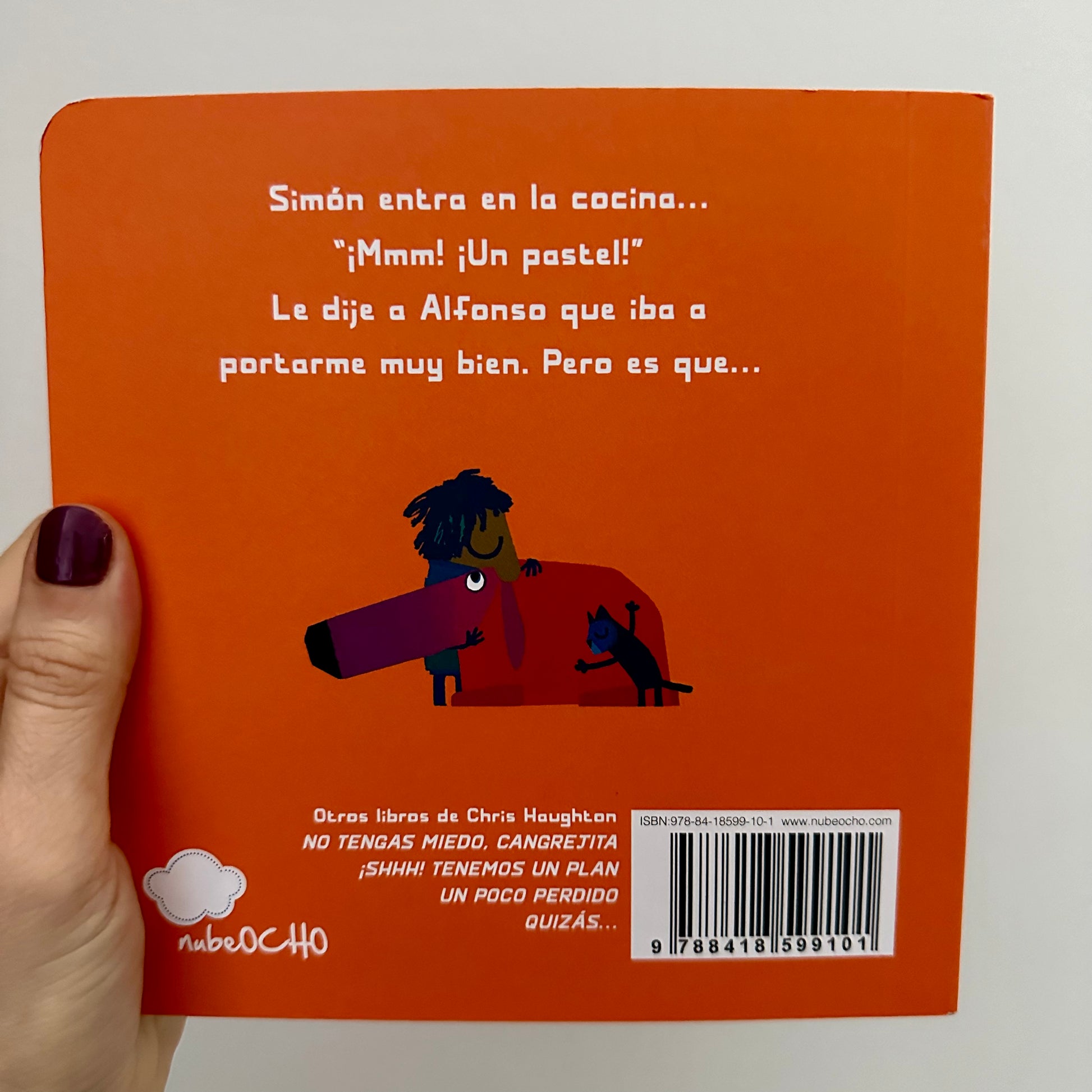 Simón quiere ser el mejor perro del mundo. Va a portarse muy bien. Cuando su dueño Alfonso sale a hacer un recado, Simón ve en la mesa de la cocina una deliciosa tarta y es que… es que… ¡No puede evitarlo! Después ve ¡un gato! Y a Simón le encanta perseguir gatos… El divertidísimo libro del prestigioso autor e ilustrador Chris Haughton.