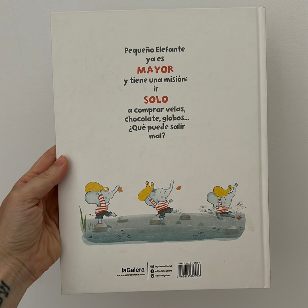 Pequeño Elefante ya es mayor, y tiene una misión de lo más importante: ir SOLO a comprar los últimos preparativos para la fiesta de Tortuga centenaria. ¿Qué puede salir mal? Solo tiene que comprar velas, chocolate, globos... y sabe dónde encontrarlo todo. Pero, sin saber cómo, empiezan los problemas: se equivoca con las cantidades, se come el chocolate, llega tarde a todos lados, se entretienen a ayudar a un suricato que se ha perdido... y la misión es un auténtico desastre.